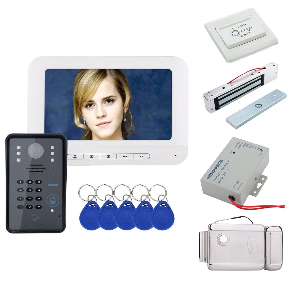Excellent Home set 7\ LCD RFID Password Video Door Phone Intercom Doorbell With IR-CUT Camera 1000 TV Line Access Control System+Locks Deals For